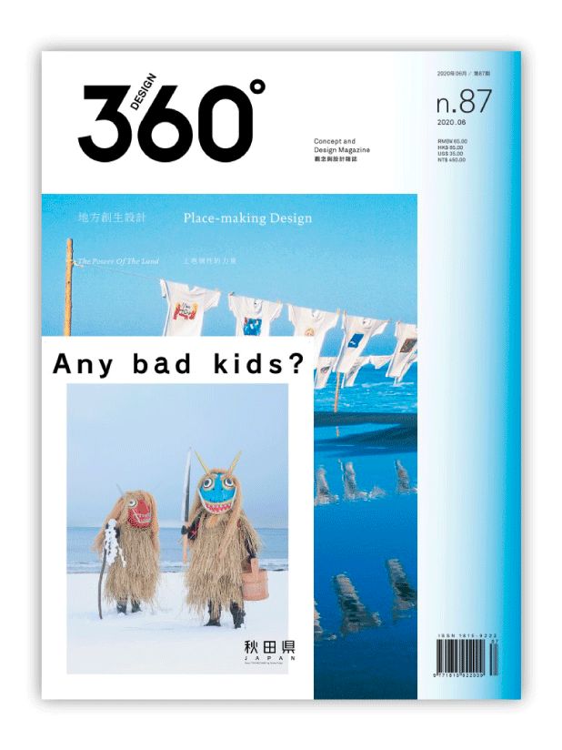 昨年 (2020年)、中国から「Design360°」という冊子に俺の作品を掲載したいからデザインワークを送ってくれないかという話があってデジタルで送ったわけよ。そうして向こうからゲラが送られてきた。冒頭から俺が10ページぐらい出てくるのよ。俺はさ、中国語が読めへんから、何を書いているやろ?と思いながらページをめくってみたら、AKITA VISIONの写真も送っているのに使われていない。ああ、習近平の悪口書いたから載ってへんのやなと。だって、堂々と「トランプ、プーチン、習近平、金正恩、世界は悪い子であふれている」とキャプションを添えているからな。