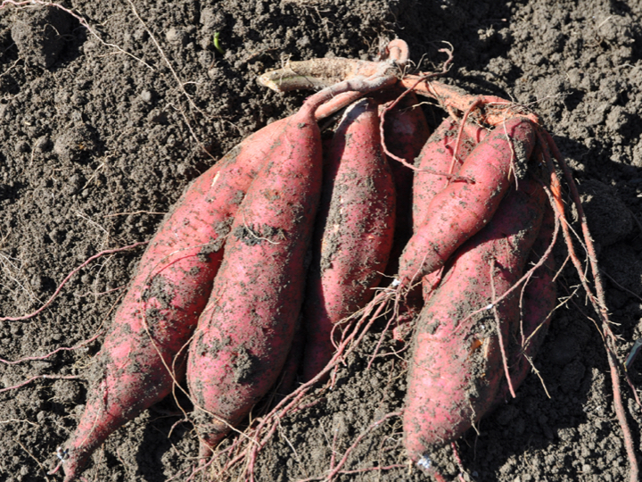 そこで今、一番簡単にオーガニックができる方法としてさつま芋を作っています。河川敷に耕作放棄地がたくさんあって、そこを耕して芋のツルを植える。芋はツルのどこを切っても根が出てくるんよ。植えて5ヶ月足らずで光合成できて、根っこにデンプンができる。それが芋なわけ。さつまいもは荒れ地ほどよろしい。河川敷は水はけもよくて、芋づくりには適してもいます。肥料も要らんし、連作にも相当強い作物でもある。栽培するのにそんなに手もかからんので、農家さんにとっても作りやすいし、ほかの仕事をしながら芋農家にもなれるんちゃうかな?収穫した芋は、四万十ドラマが買い上げて加工し、商品を作るーということをやり始めた。